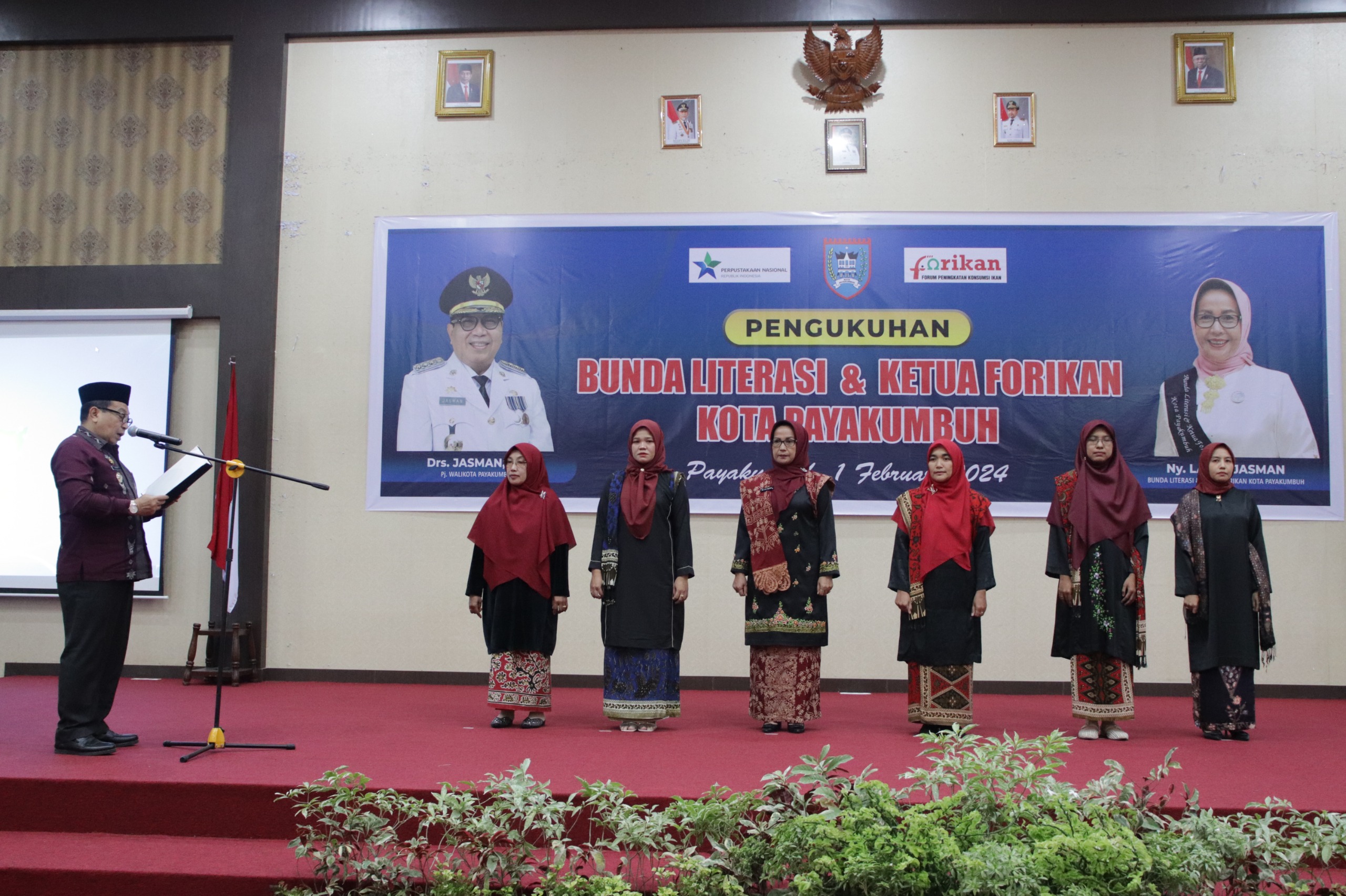 Payakumbuh—Bunda Literasi Kota Payakumbuh, Bunda Literasi Kecamatan se-Kota Payakumbuh, dan Pengurus Forum Peningkatan Konsumsi Ikan (Forikan) Kota Payakumbuh dalam Formasi Jabatan Ex Officio periode 2023-2024 resmi dikukuhkan di Balai Kota Payakumbuh, Kamis (1/2/2024).