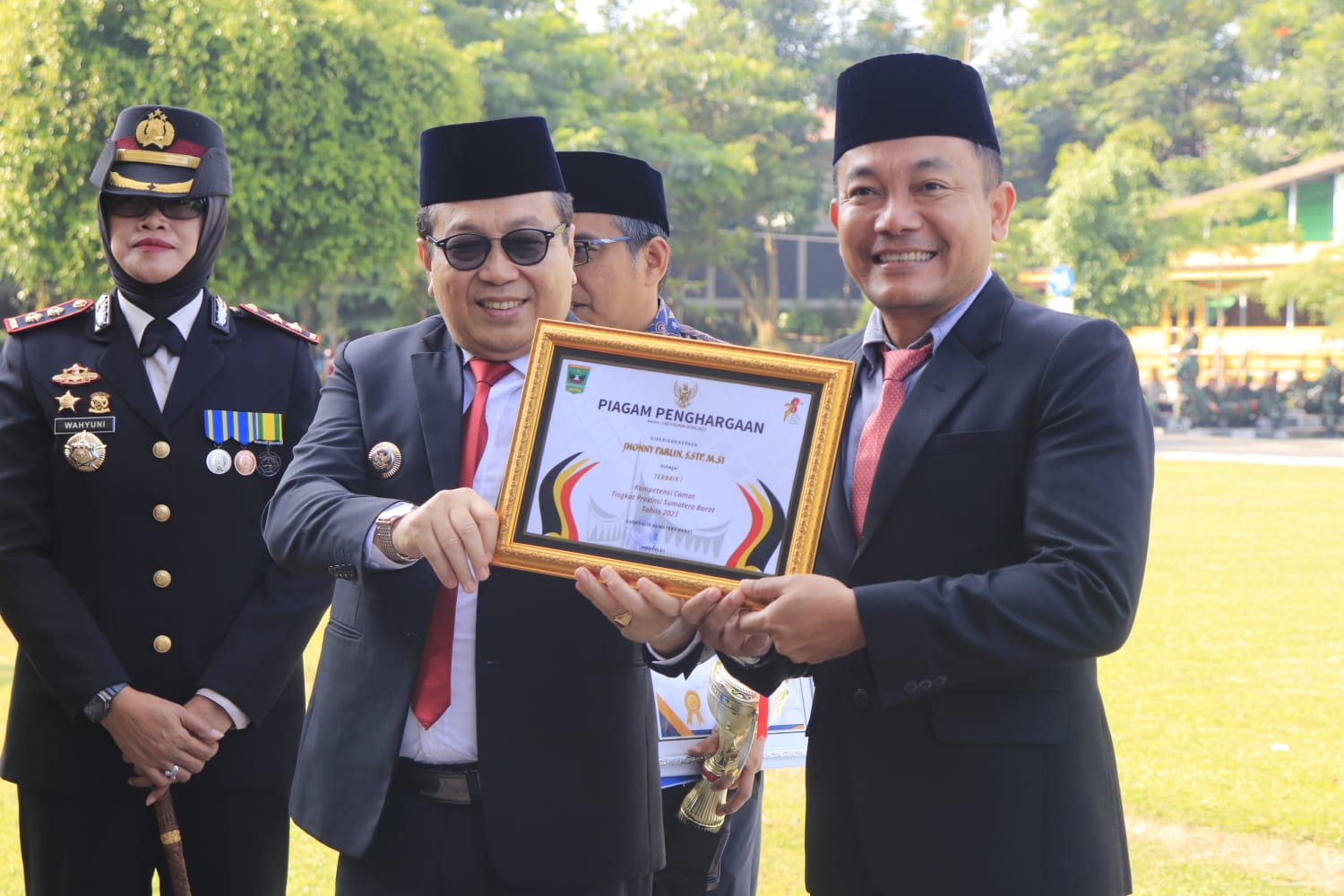 Kemudian sebagai peringkat 1 (satu) Sumbar untuk lomba LPM berprestasi yang diraih LPM Kelurahan Tiakar yang diterima oleh ketua LPM Tiakar Sepriyendi.