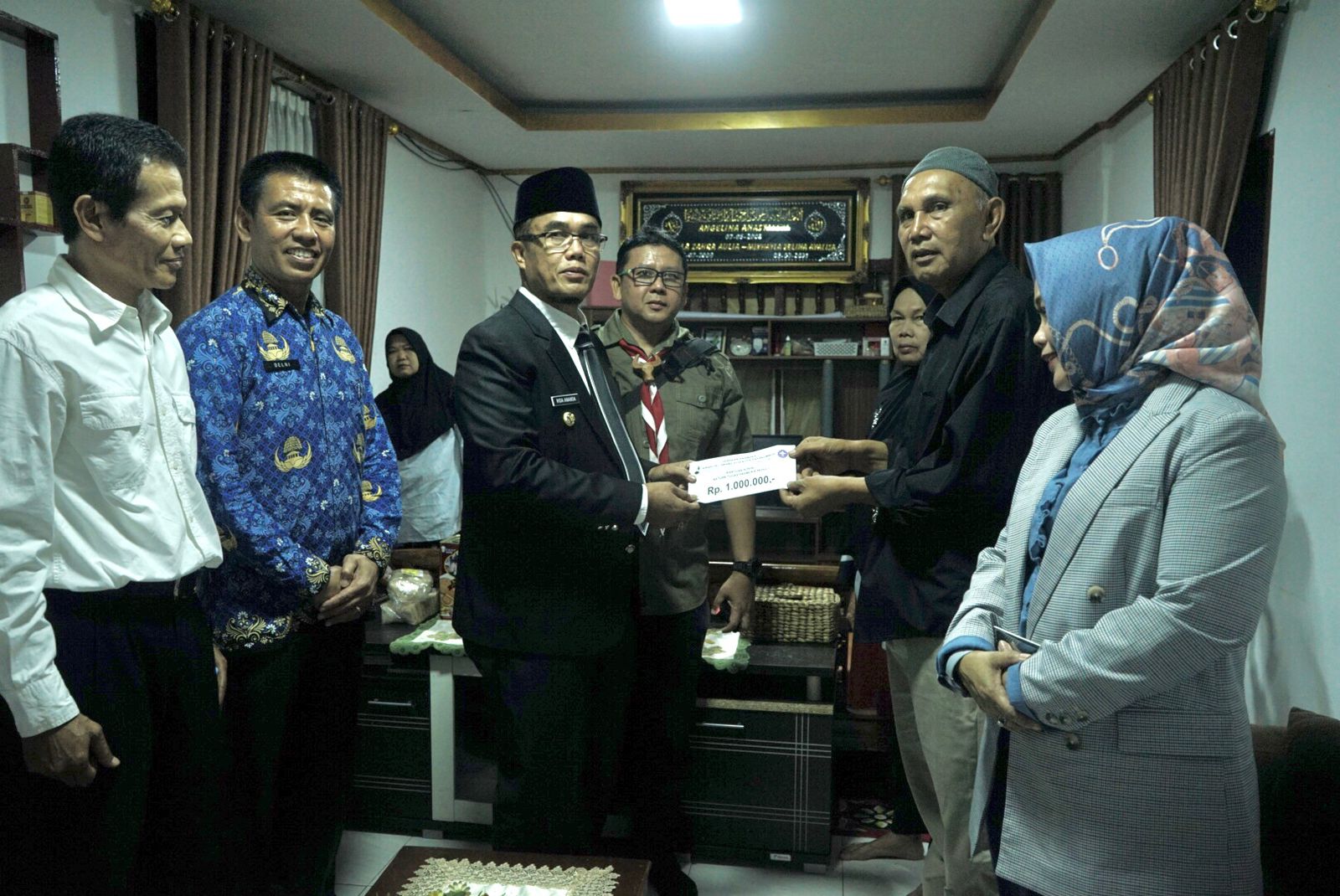 Payakumbuh – Peduli sesama, Ka. Kwartir Cabang (Kwarcab) 0314 Pramuka Kota Payakumbuh yang juga Pj. Wali Kota Payakumbuh, menyerahkan bantuan kepada dua penderita kelainan jantung di dua lokasi.