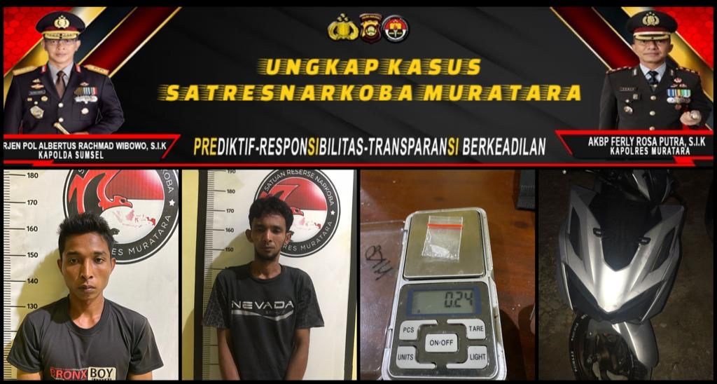Lalu team melakukan penangkapan terhadap tersangka yang pada saat itu sedang mengendarai sepeda motor dan melintas di jalan lintas sumatera km. 85 depan Mako Polres muratara, tim satresnarkoba yang dipimpin oleh Kanit Narkoba Polres Muratara melaksanakan giat penangkapan terhadap dua orang Laki-laki yang pada saat itu sedang melintas di Jalan lintas sumatera km. 85 depan Mapolres Muratara kemudian pada saat dilakukan penggeledahan terhadap badan, pakaian, serta tempat kemudian ditemukan barang bukti berupa 1 (satu) bungkus plastik klip bening yang diduga berisikan narkotika jenis sabu yang sempat dibuang oleh salah satu tersangka di Jalan yang tidak jauh dari tempat tersangka. Kemudian pelaku dan barang bukti di bawa ke Polres Muratara guna proses hukum yang berlaku. (ag)