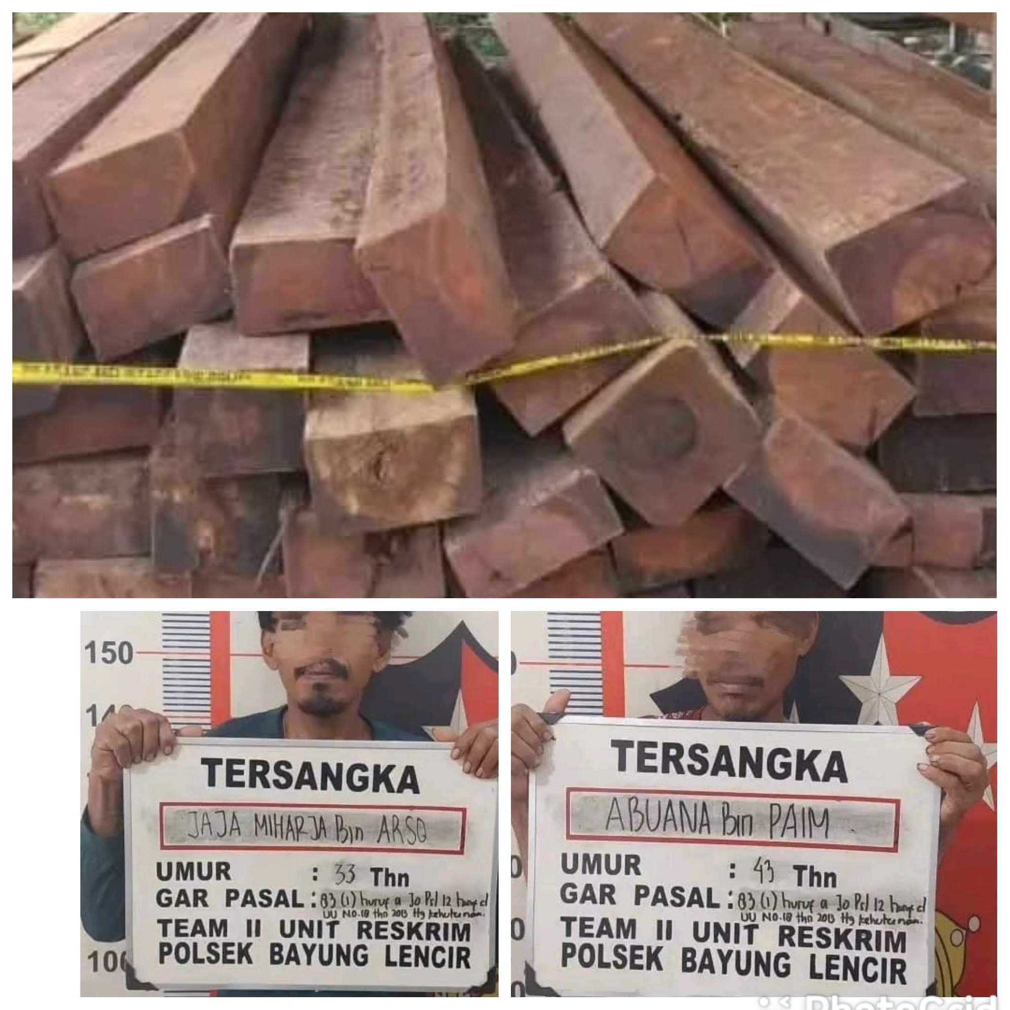 MUBA,– Dua Tersangka Pelaku Ilegal Logging warga yang berasal dari Pangkalan lampam Oki, Jaja Miharja (33) dan Abuana (43) tertangkap tangan oleh Unit Reskrim Polsek Bayung lencir saat sedang mengangkut kayu di sungai Desa Muara Medak Kecamatan Bayung Lencir pada hari Sabtu (24/06/2023).