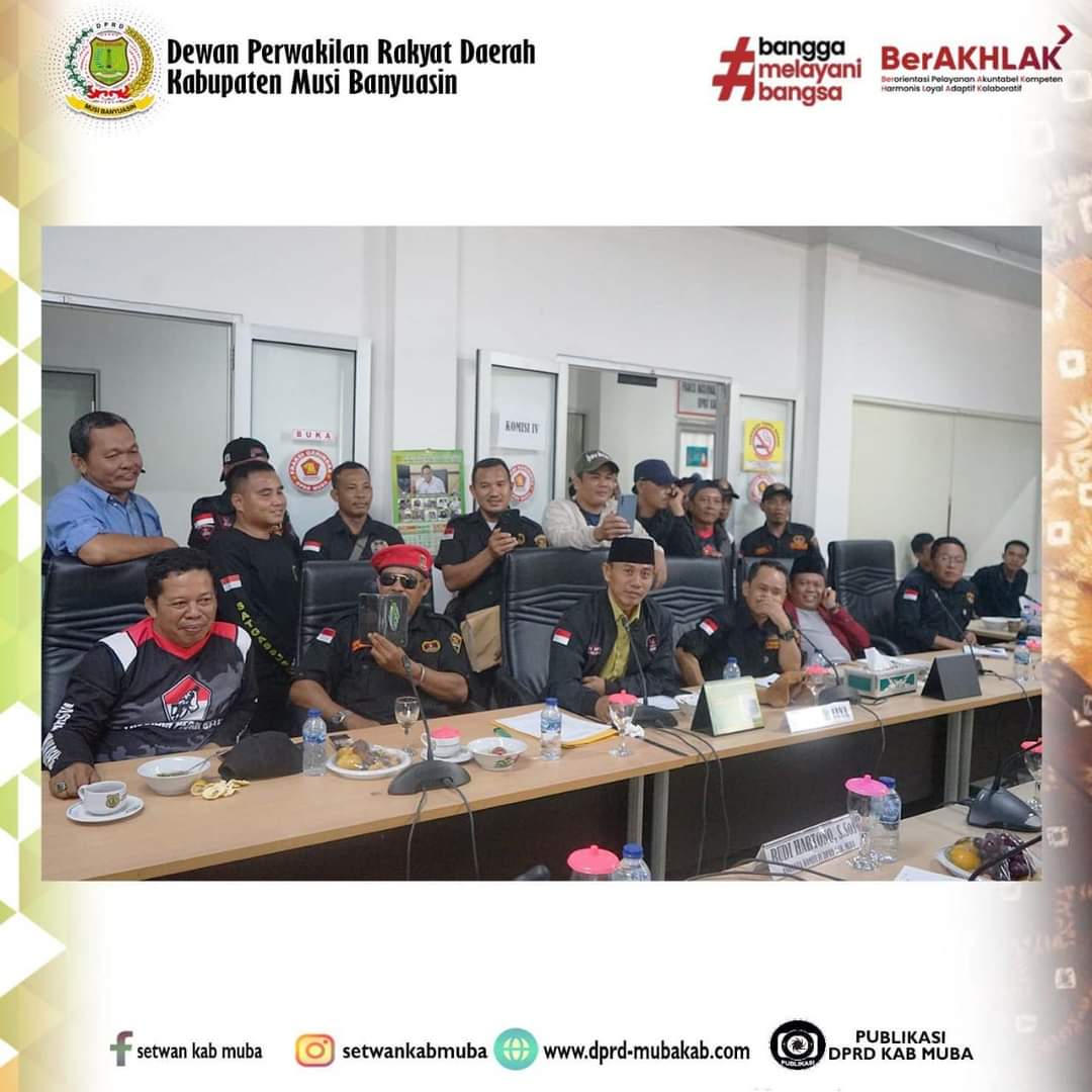 Rapat dipimpin oleh Ketua Komisi IV Edi Hariyanto, dihadiri oleh Wakil Ketua Komisi IV H. Ahmadi, S.E, Anggota Komisi IV, Bagian Hukum Setda Kabupaten Muba, Dinas Tenaga Kerja dan Transmigrasi Kabupaten Muba dan DPC GRIB Jaya.