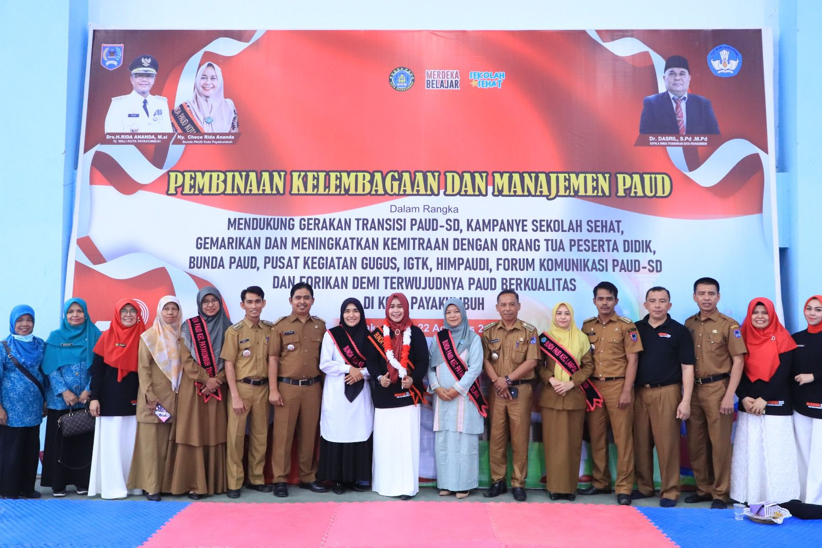Payakumbuh—Ribuan peserta dari Kota Payakumbuh mengikuti acara Pembinaan Kelembagaan dan Manajemen PAUD dalam rangka mendukung gerakan transisi PAUD-SD yang menyenangkan, kampanye sekolah sehat dan Gemarikan, Selasa (22/08/2023).