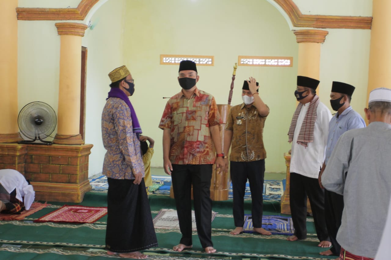 Sebelum Shalat Jum’at berjamaah dengan masyarakat di Masjid An-Nur, Jumat (28/8/2020), Wabup menyampaikan tujuan kunjungan kerjanya sengaja untuk bersilaturahmi dan meninjau langsung kondisi masyarakat khususnya di Desa Cinta Damai.