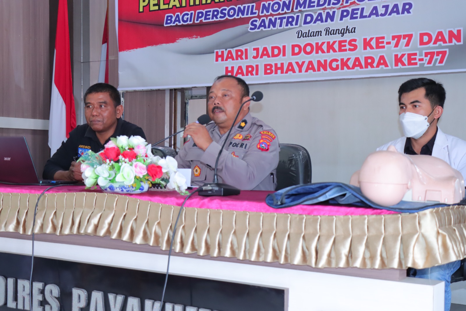 Payakumbuh,- Dalam rangka memperingati Hari Bhayangkara ke 77 dan Hari Jadi Dokkes Polri ke 77, Polres Payakumbuh menggelar pelatihan bantuan hidup dasar bagi pelajar, Selasa (20/06/2023).