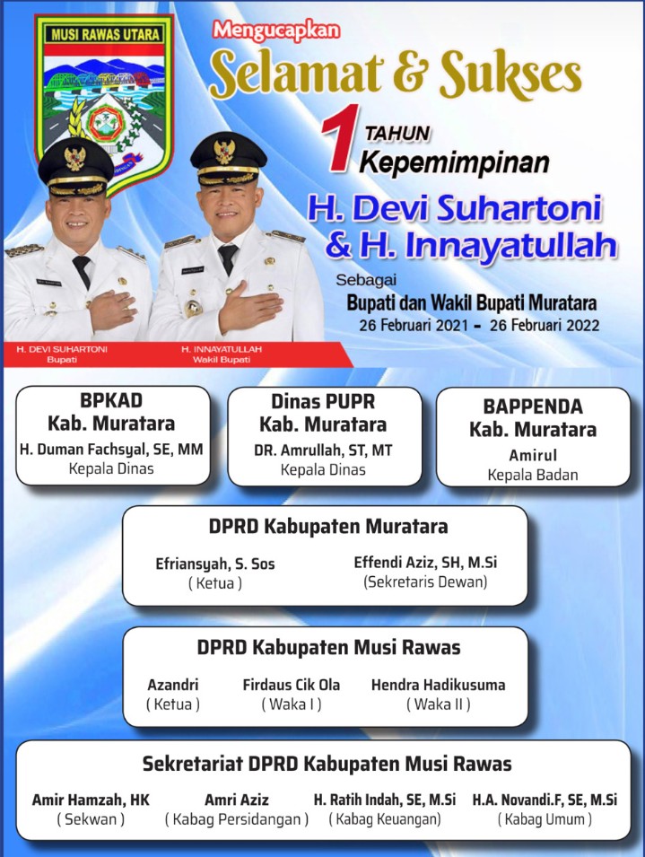 Selamat Atas Satu Tahun Kepemimpinan Bupati & Wakil Bupati Murataraadmin202124 Februari 202228 Februari 2022Muratara