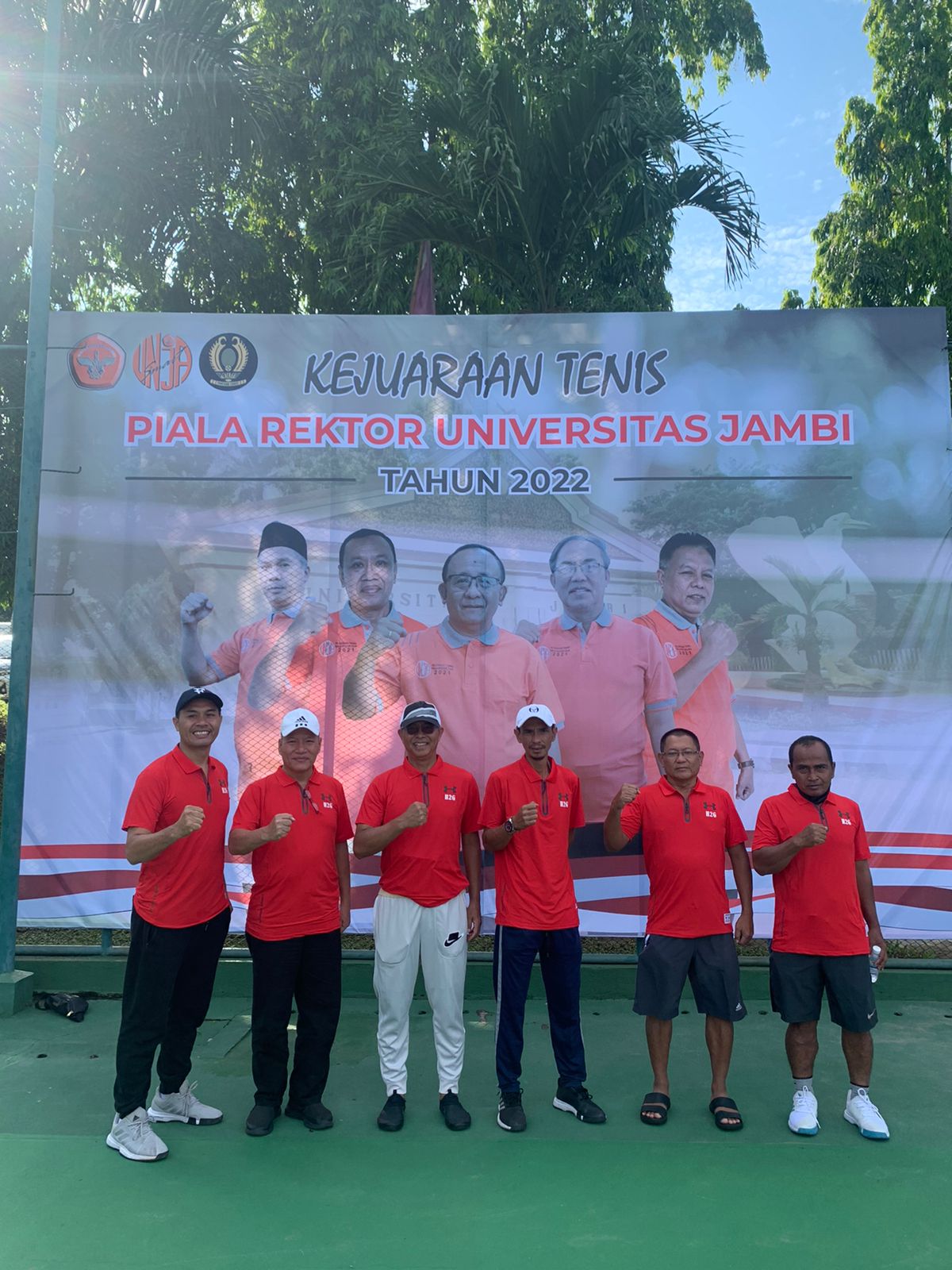 JAMBI – Tim tenis lapangan H2G Silampari yang dimotori langsung H Hendra Gunawan (H2G) berpeluang besar memboyong Piala Rektor Universitas Jambi (Unja) tahun 2022. Bertanding di Kota Jambi, Bupati Musi Rawas Periode 2016 – 2021 itu sukses melewati babak pertama putaran group dengan hasil sempurna. Dua tim kuat yakni Pemkot Jambi dan Tennis Lover dilibas H2G Cs dengan skor telak masing-masing 3-0.