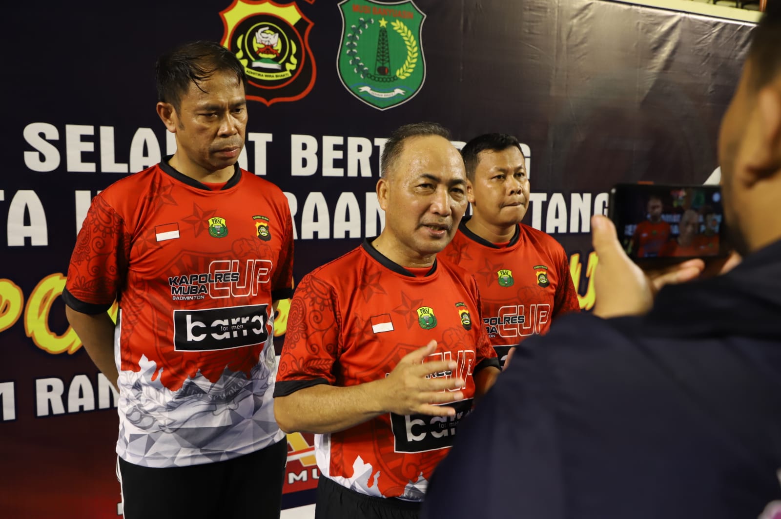 Pj Bupati Muba H Apriyadi dalam sambutannya mengapresiasi perhelatan turnamen tersebut. Dikatakannya kegiatan olahraga bersama yang dikemas dalam rangka HUT Bhayangkara ke-76 ini merupakan investasi jangka panjang agar tubuh tetap sehat dan juga sebagai ajang silaturahmi.