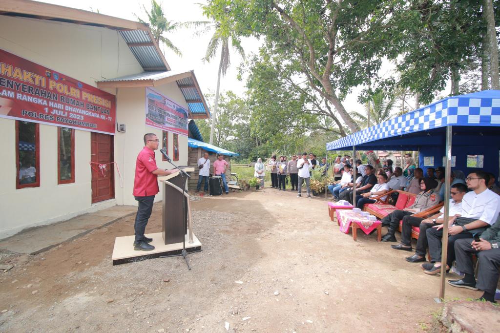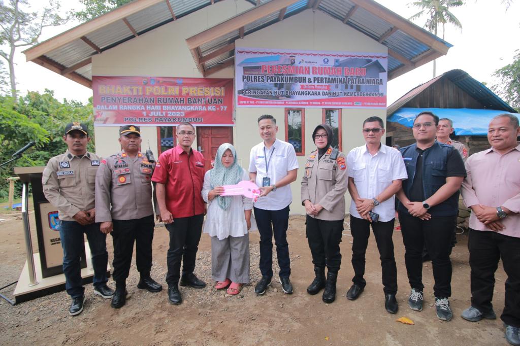 Untuk diketahui, bantuan rumah baru tersebut diberikan kepada Sari Puspita (30) yang tinggal dirumah tidak layak huni (RTLH) bersama 8 orang keluarga lainnya, di kelurahan Koto Panjang Dalam, kecamatan Lamposi Tigo Nagori (Latina). Bantuan rumah baru itu juga dalam rangka memperingati HUT Bhayangkara ke-77 tahun 2023.