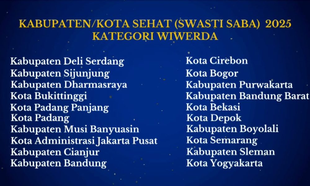 “Alhamdulillah, Swasti Saba Wiwerda kembali dapat kita raih pada tahun 2025 ini. Penghargaan ini sangat penting bagi kota yang berkomitmen mewujudkan kota sehat. Terima kasih kepada seluruh SKPD dan Forum Kota Sehat atas kerja keras dan kolaborasinya. Ini adalah hasil kerja lintas sektor. Program kesehatan bukan hanya tugas tenaga kesehatan, tetapi tanggung jawab semua pihak. Dengan penghargaan ini, kita akan terus meningkatkan upaya mewujudkan masyarakat yang lebih sehat dan lingkungan yang lebih baik,” ujarnya.