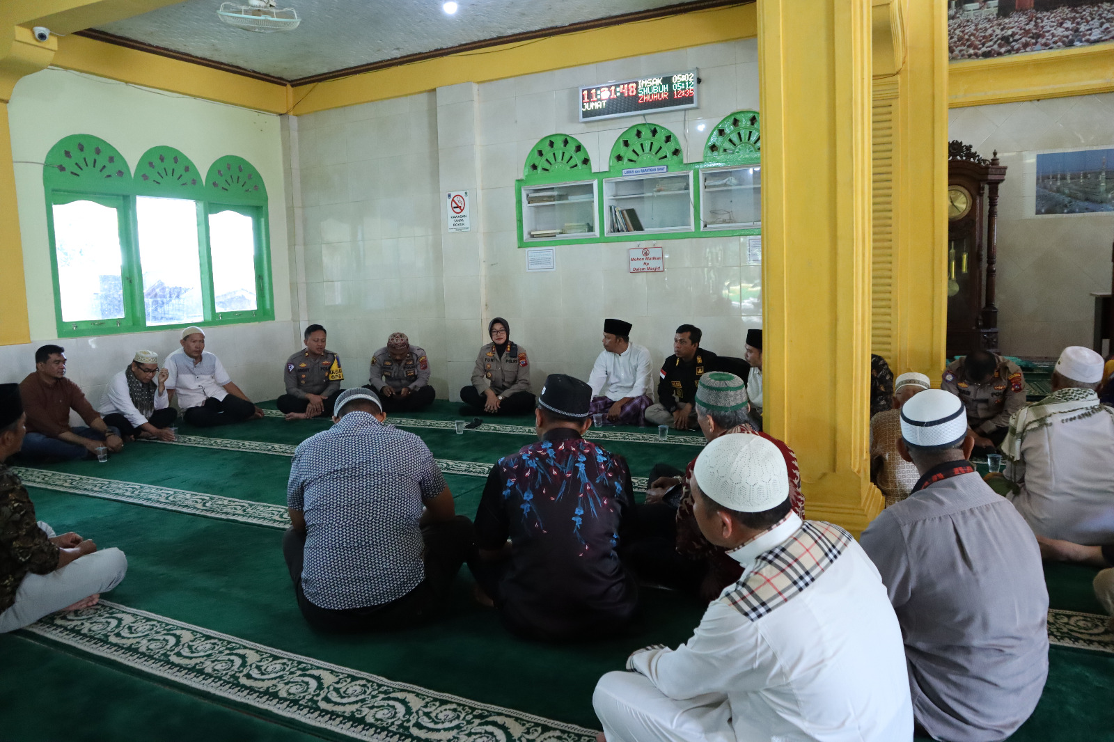 Kapolres Payakumbuh Akbp Wahyuni Sri Lestari SIK.MH didampingi pejabat utama jajaran Polres Payakumbuh diterima Lurah Payolansek Pengurus Masjid dan Ninik mamak serta para jemaah.
