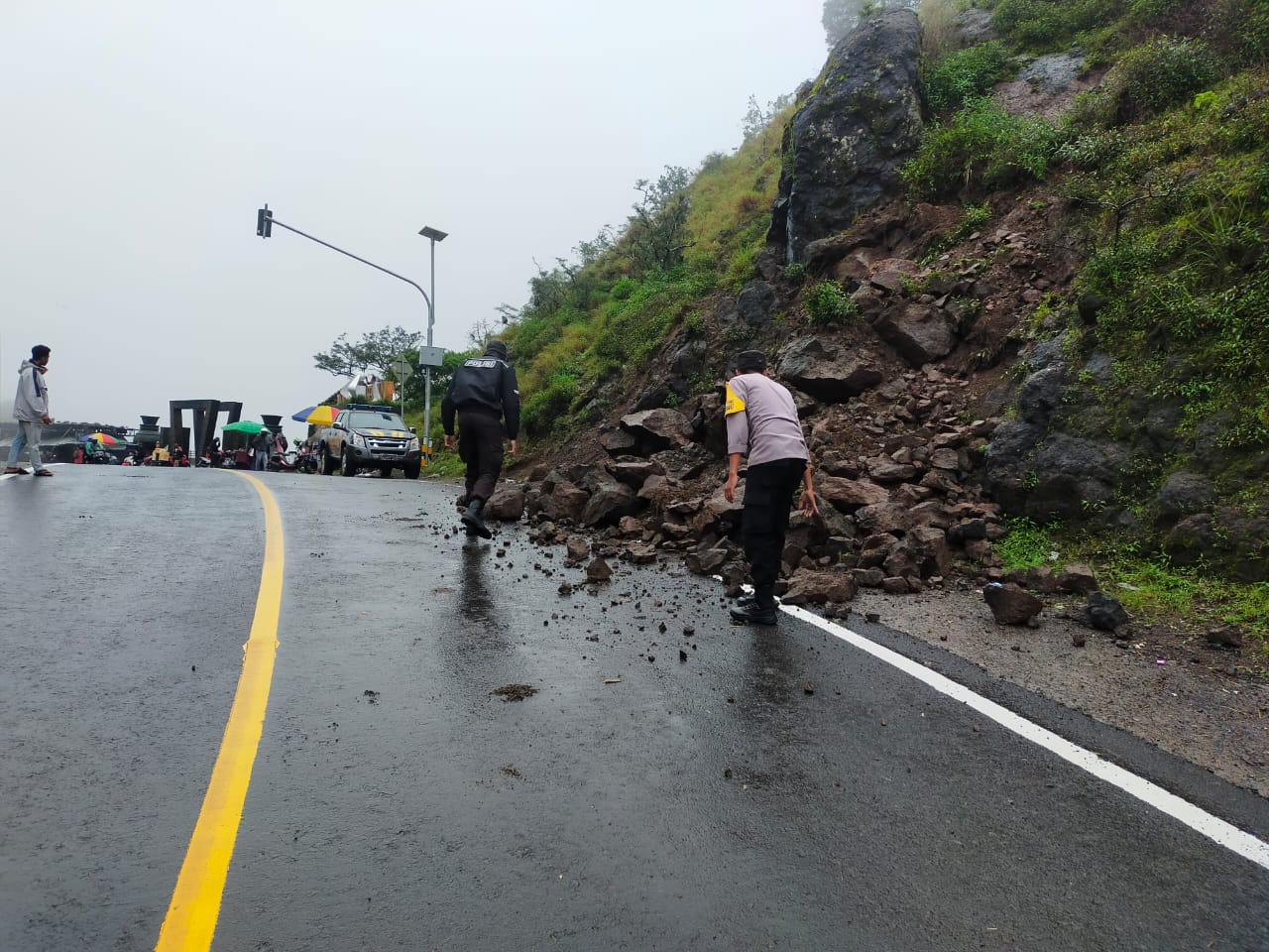 Hal ini dikarenakan masih adanya bebatuan kecil yang jatuh dari tebing bukit yang ada disekitar tempat terjadinya longsor.