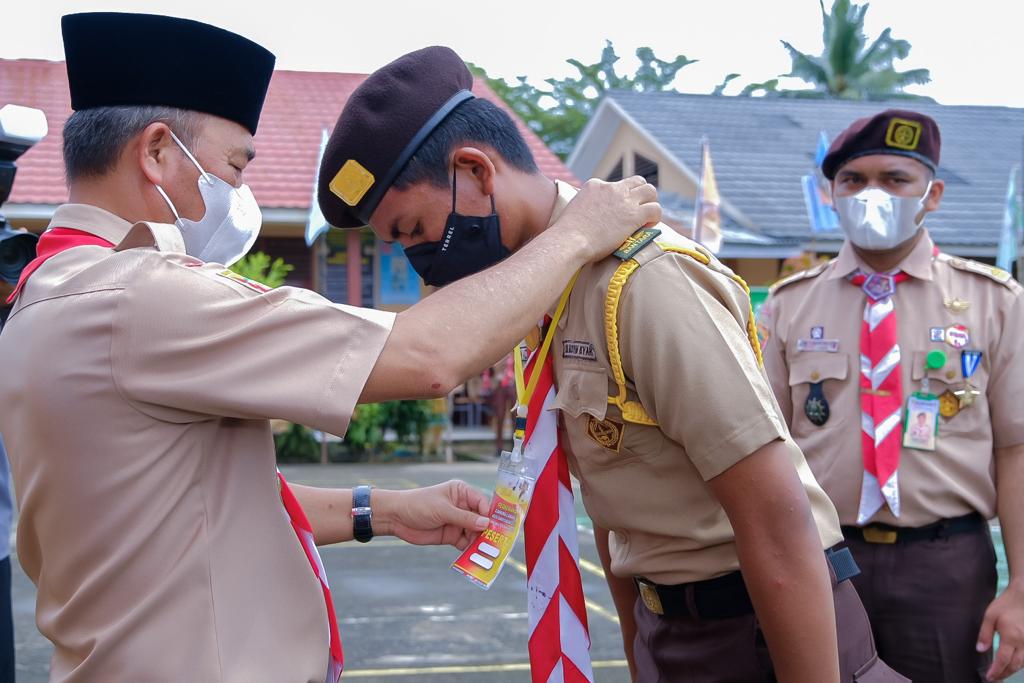 BAYUNG, LENCIR, – Sekretaris Daerah Kabupaten Muba Drs H Apriyadi MSi sekaligus Ketua Kwartir Cabang Gerakan Pramuka Kabupaten Muba memimpin upacara pembukaan kegiatan Raimuna Tingkat Cabang Gerakan Pramuka Muba, di SMP Negeri 1 Bayung Lencir, Kamis (16/12/2021).