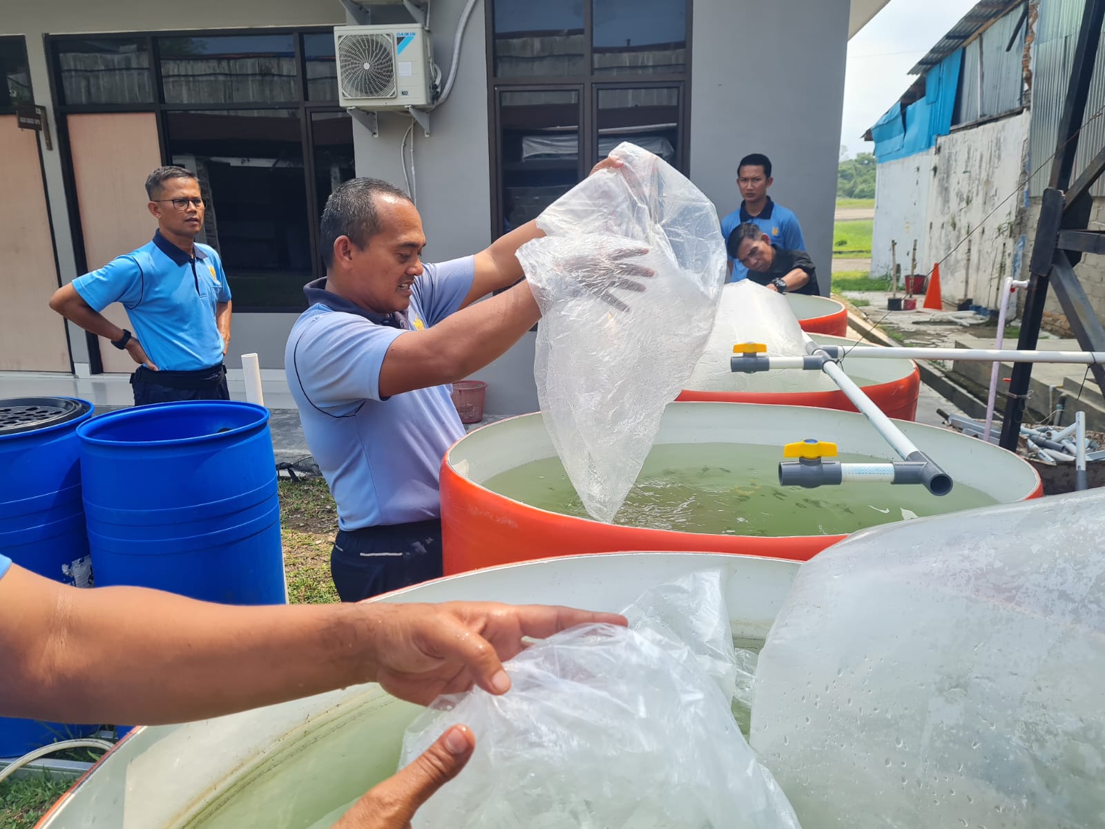 Padang –TNI AU – LANUD SUT. Dalam rangka meningkatkan Ketahanan pangan di Lanud Sutan Sjahrir, Komandan Lanud SUT Kolonel Nav Saeful Rakhmat meninjau sekaligus menerima dukungan bibit ikan dari Dinas Perikanan dan Kelautan Prov. sumbar untuk dikembangkan dengan metode Bioflok bertempat di Lanud Sutan Sjahrir, Padang. Jum’at, (27/10/2023).