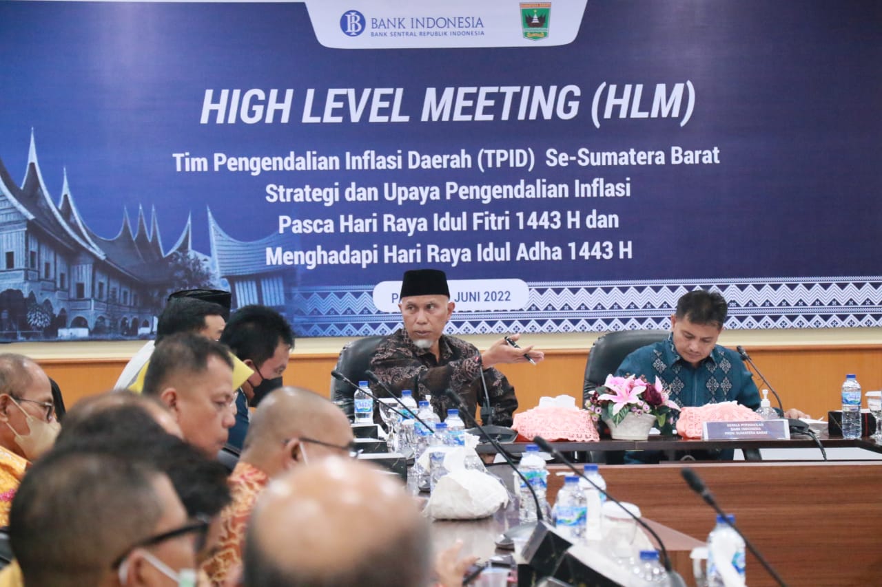 Sumbar -Tim Pengendalian Inflasi Daerah (TPID) Provinsi Sumatera Barat (Sumbar) menggelar High Level Meeting (HLM) dalam rangka Upaya Pengendalian Inflasi Pasca Hari Raya Idul Fitri dan Menghadapi Hari Raya Idul Adha bertempat di Ruang Rapat Excellence Kantor Perwakilan Bank Indonesia Provinsi Sumatera Barat, di Jl. Jenderal Sudirman, Kota Padang, Kamis (9/6/2022).