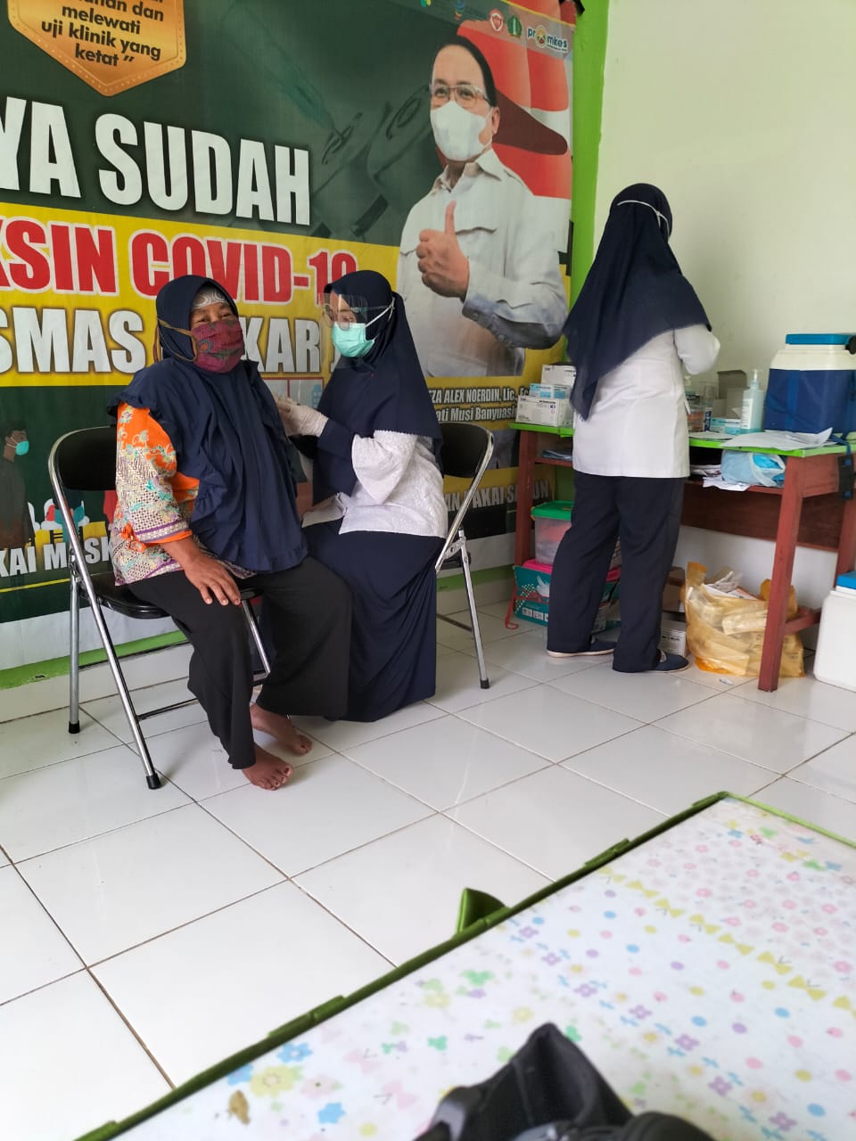 Danramil 401-01/sungai lilin, Kapten Arm Indra jaya saat ditemui di Makoramil menjelaskan bahwa kegiatan pendampingan vaksinasi COVID-19 adalah wujud dukungan TNI untuk sukseskan program pemerintah sebagai upaya melawan pandemi COVID-19.