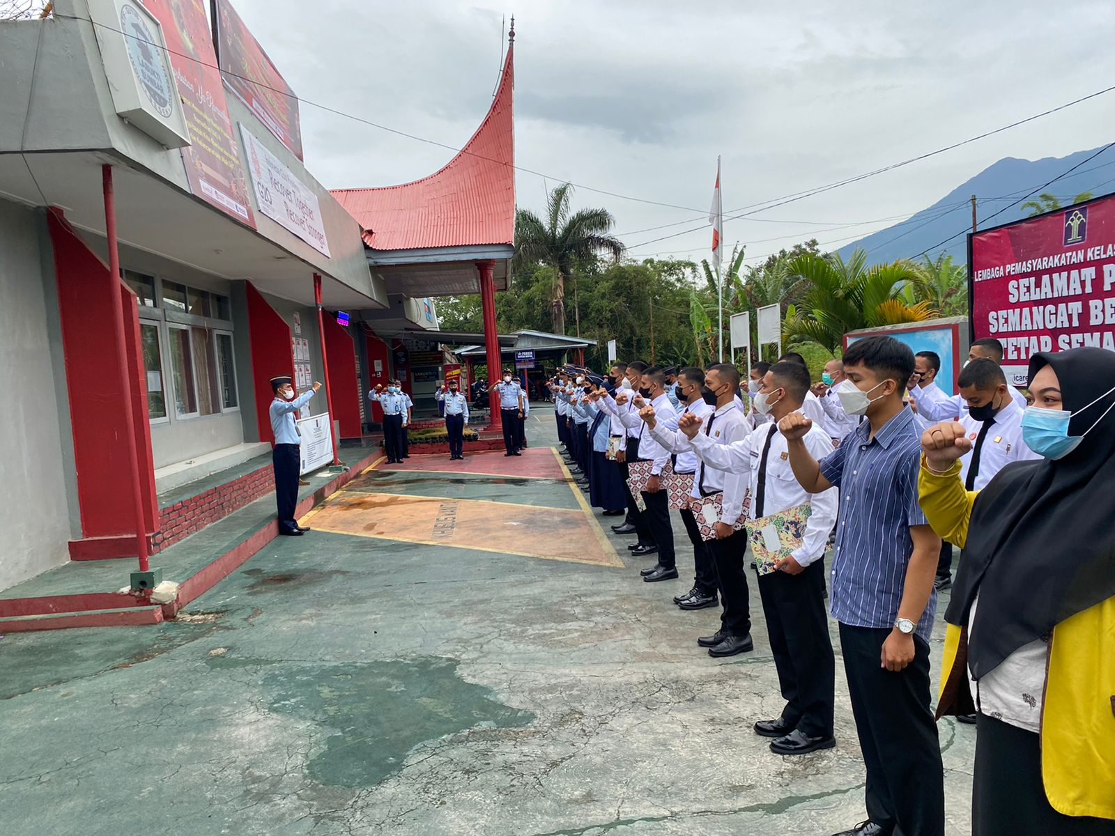 “Bertugaslah sebaik mungkin dan jadilah insan Pengayoman yang benar-benar mengayomi. Kehadiran Anda di Lapas Bukittinggi merupakan kerja keras Anda. Untuk itu, jaga pribadi Anda dalam melaksanakan tugas,” pesan Kepala Lapas (Kalapas) Bukittinggi.