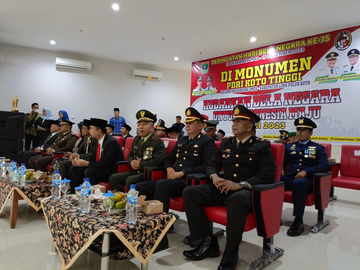 Lima Puluh Kota — Danramil 05 Harau Mayor Inf Zul Padri wakili Dandim 0306/50 Kota mengikuti upacara Bela Negara ke 75 tahun 2023, bertempat di Gedung Monumen PDRI Nagari Koto Tinggi Kecamatan Gunung Omeh. Selasa (19/12/2023).