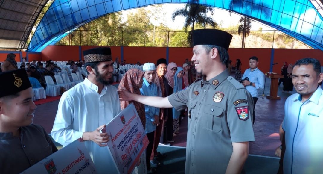 Bukittinggi, Pemerintah Kota Bukittinggi serahkan honorarium 836 guru TPQ, TPSA, TPA, TKQ, MDTA dan guru swasta pada pondok Al Quran, rumah tahfiz, pondok pesantren serta garin se Kota Bukittinggi untuk triwulan I tahun 2023. Honor itu diserahkan secara simbolis oleh Wali Kota Bukittinggi, di Gor Bermawi, Senin, (17/04).