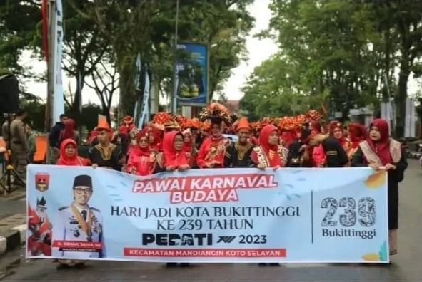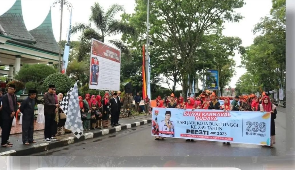 Bukittinggi –Dalam rangka Hari Jadi Kota Bukittinggi ke 239 tahun dan rangkaian acara pedati ke 13, Pemerintah Kota Bukittinggi melalui Dinas Pariwisata, gelar awai karnaval Kurai Limo Jorong. Kegiatan ini dilaksanakan di Lapangan Wirabraja, Senin, (18/12/2024)/r 2023.