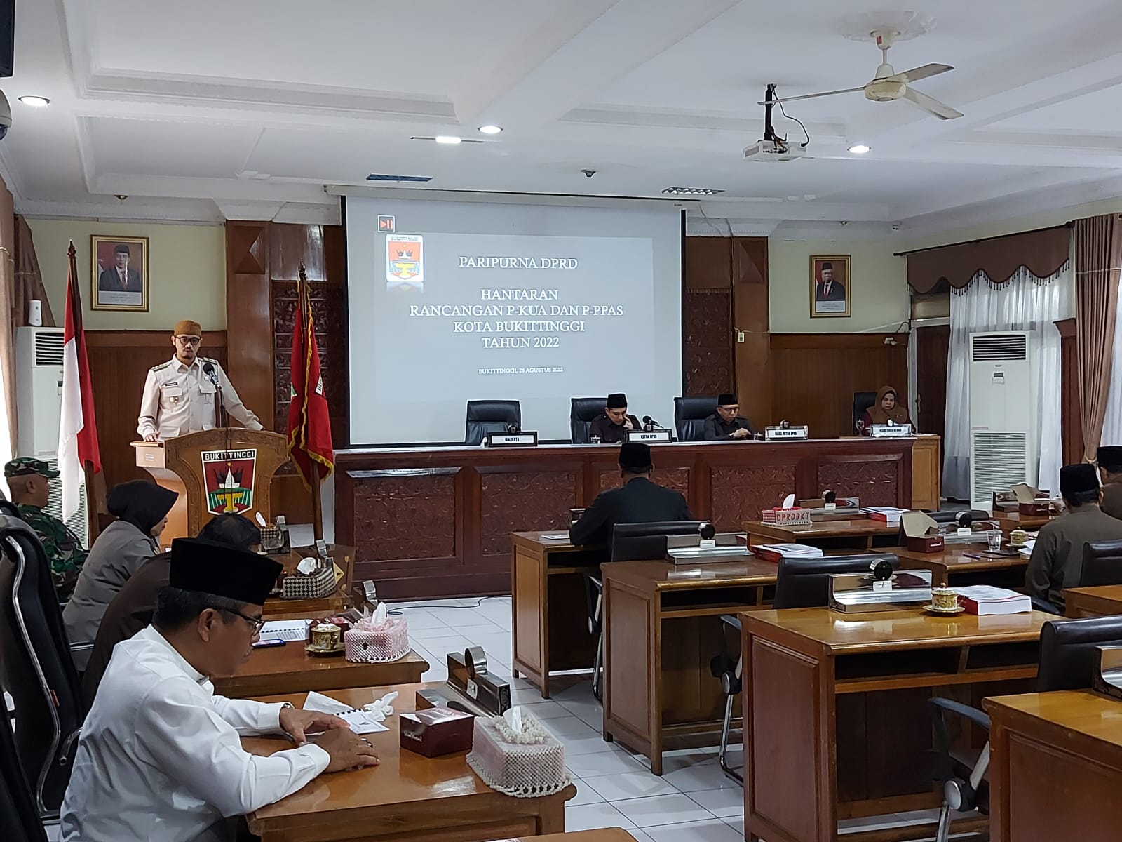 Bukittinggi, Wali Kota Bukittinggi hantarkan Nota Rancangan Perubahan Kebijakan Umum Anggaran-Prioritas dan Plafon Anggaran Sementara (KUA-PPAS) APBD 2022.  R-KUA PPAS ini, dihantarkan secara resmi dalam rapat paripurna di Gedung DPRD Bukittinggi, Jumat (26/08).