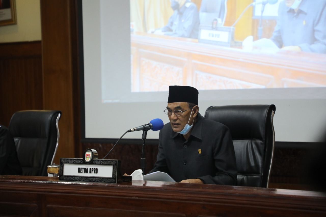 Rapat Paripurna tersebut dipimpin Ketua DPRD Bukittinggi Herman Syofyan dengan mematuhi protokol kesehatan dan juga dilaksanakan secara virtual.( Anasrul )