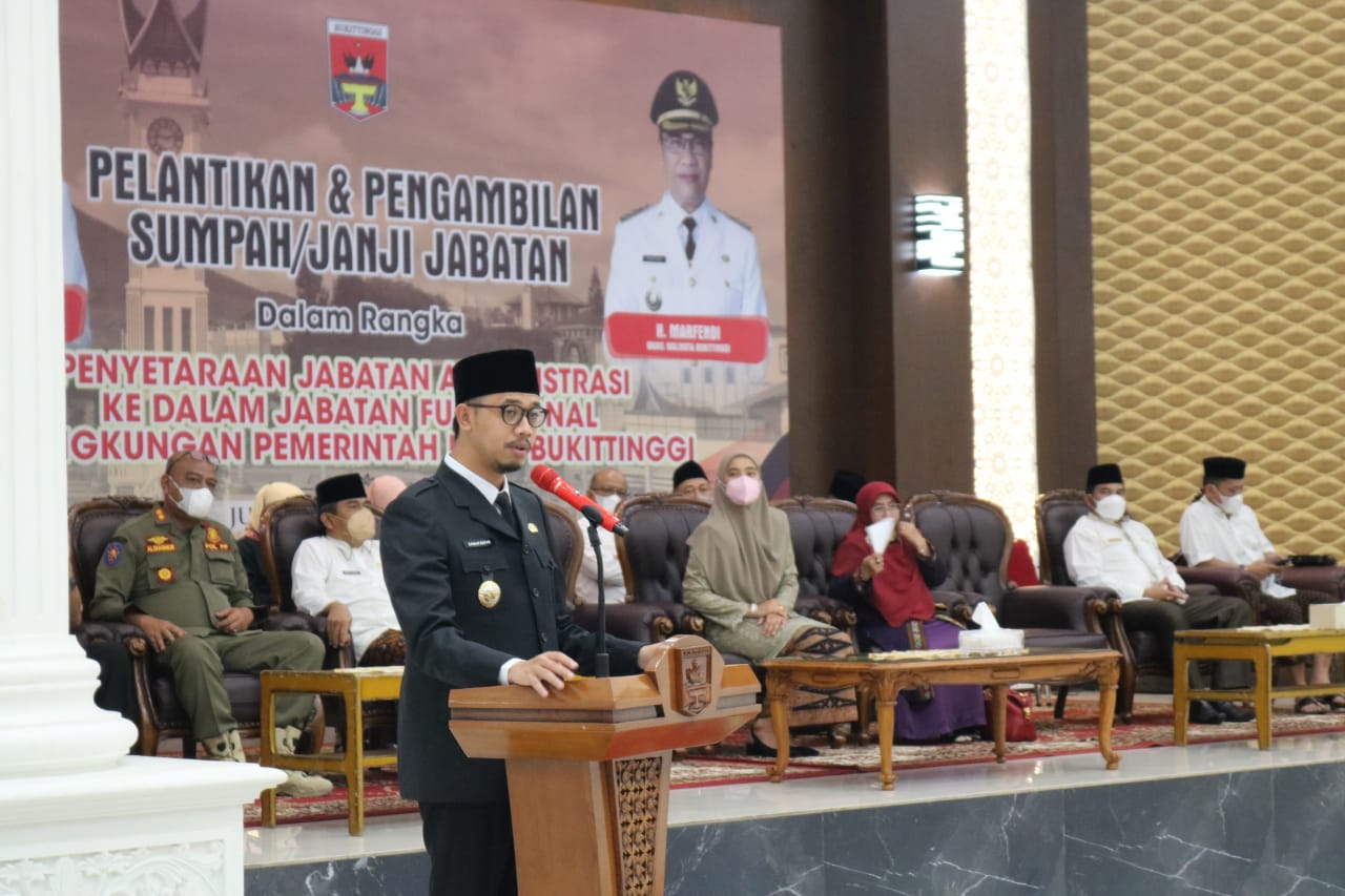Walikota Bukittinggi Erman Safar mengatakan Pelantikan ini merupakan program prioritas Presiden yang harus dilaksanakan dengan segala konsekuensi yang ada untuk memangkas birokrasi dan menyederhanakan eselonisasi yang dituangkan dalam Permenpan RB Nomor 17 Tahun 2021 tentang Penyetaraan Jabatan Administrasi Ke Dalam Jabatan Fungsional dan Permenpan RB Nomor 25 Tahun 2021 tentang Penyederhanaan Struktur Organisasi Pada Instansi Pemerintah;.