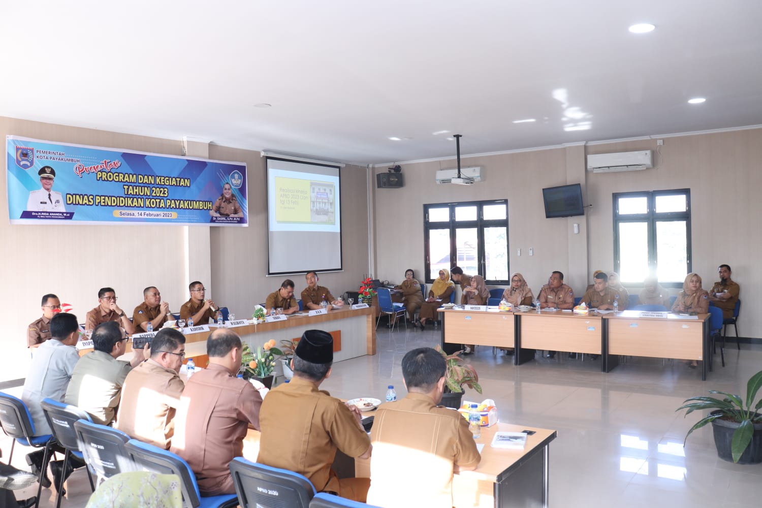 Payakumbuh — Penjabat Wali Kota Payakumbuh Rida Ananda menghadiri Expose/paparan Kepala Dinas Pendidikan terkait Program dan Kegiatan Dinas Pendidikan dan Laporan Realisasi bulan Januari dan Februari 2023 bertempat di Aula Dinas Pendidikan Kota Payakumbuh, pada Selasa (14/2).