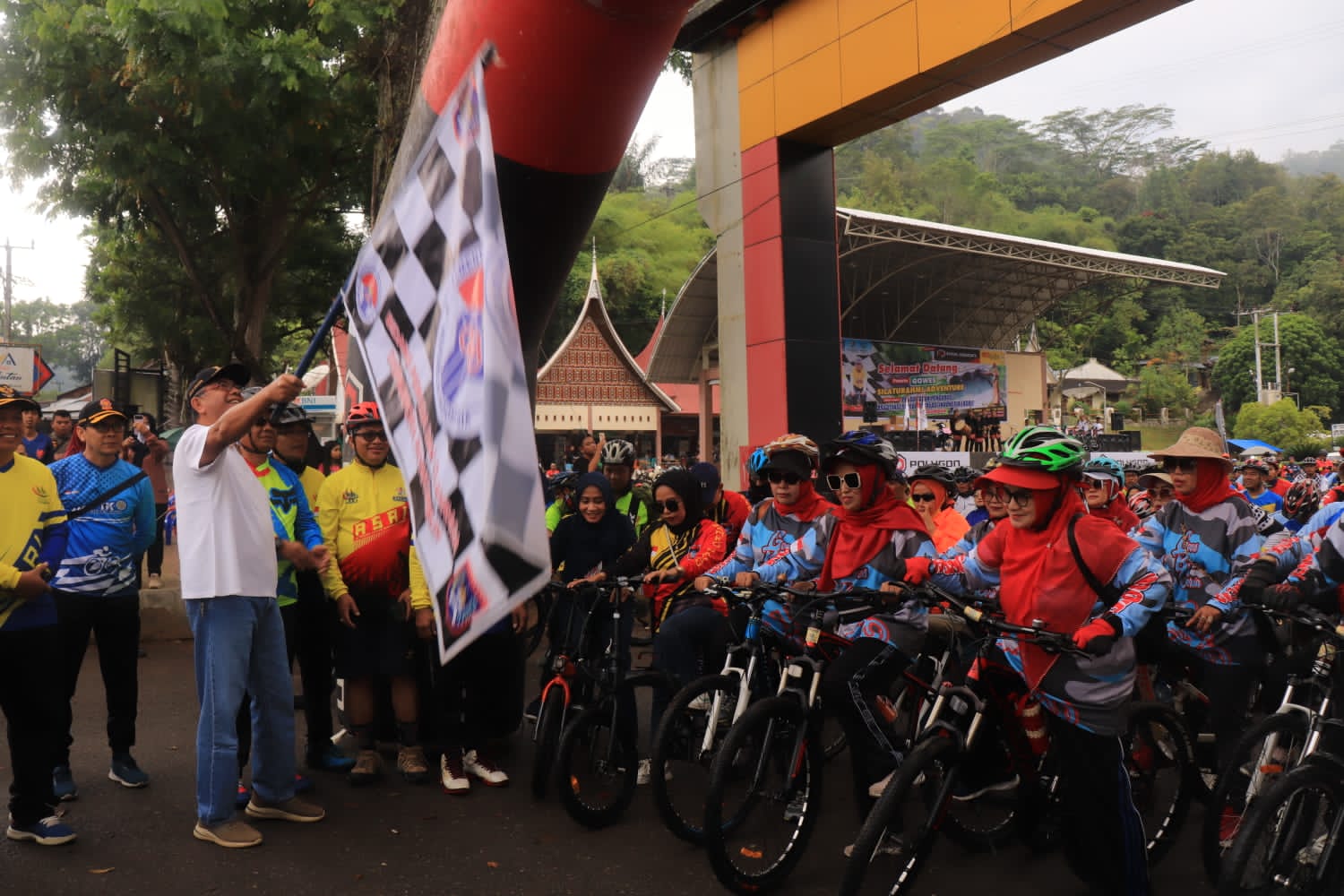 Sebelum menarik bendera pertanda peserta dilepas, orang nomor satu di kota Payakumbuh itu mengajak seluruh para goweser yang ikut serta agar dapat menikmati alam kota Payakumbuh yang asri.