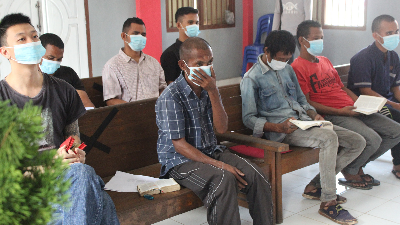 Tampak salah satu warga binaan Nelson Saragih mendengarkan khotbah dari pendeta Laopra Purba dengan sangat khidmat. Selain itu juga ada nyanyian pujian yang dibawakan oleh para warga binaan itu sendiri dan ditutup dengan Doa.