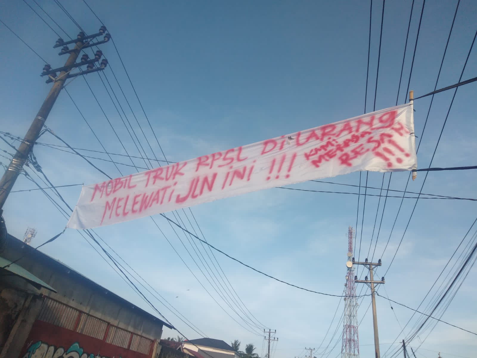 Jambi – Pemasangan baleho penolakan truk melewati wilayah RT.27 Kelurahan Payo selincah yang membawa kayu PT Rimba Palma Sejahtera Lestari belum juga mendapatkan titik terang, Minggu (12/06/22).