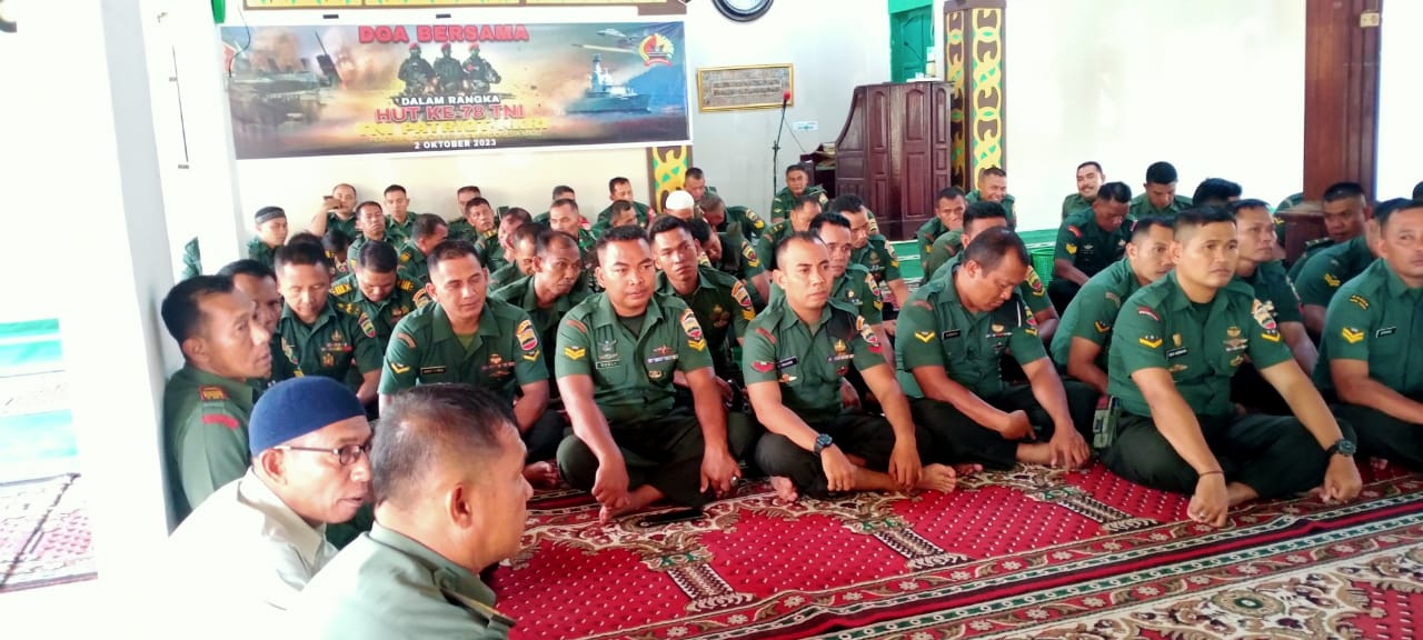 Dalam sambutannya sebelum pelaksanaan do’a Kapten Inf Salim mengingatkan agar kita semua memohon kepada Tuhan Yang Maha Esa agar dalam pelaksanaan seluruh kegiatan HUT TNI yang ke-78 ini diberi kelancaran dan kesuksesan, dan kedepannya TNI semakin kuat dan hebat bersama-sama rakyat dalam mengawal negara Republik Indonesia.